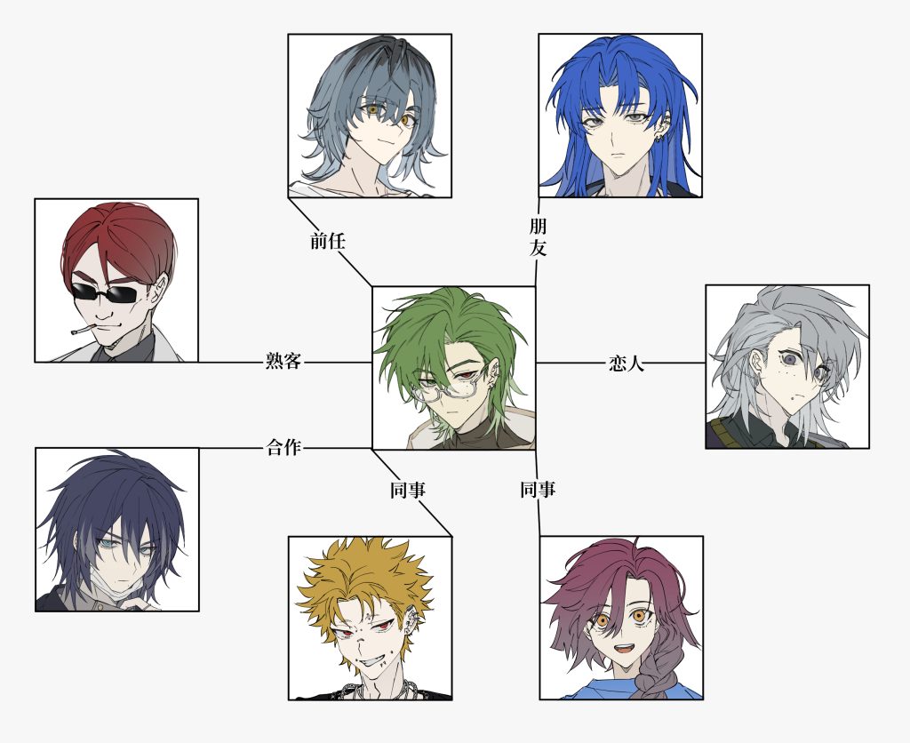 以上是他对外展示出来的一面。在熟悉的人面前,他会逐渐露出更真实的一面——话少、神情淡漠,偶尔情绪波动明显却不愿解释。他内心冷淡疏离,其实并不喜欢与人过多接触,更喜欢自己一个人待着。长年累积的孤独与童年经历带来的创伤让他极度不信任外界。